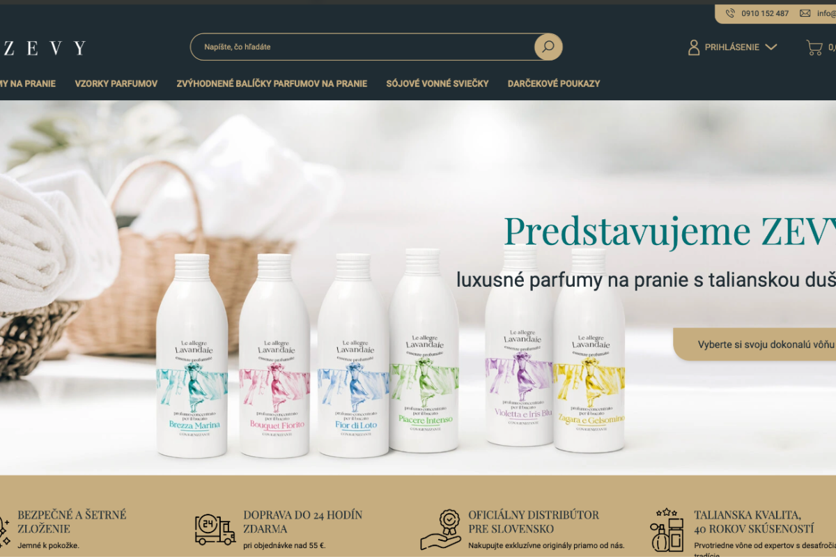 Predám kompletne vybudovaný e-commerce projekt v segmente parfumov do prania (Zevy.sk) Projekt funguje približne 10 mesiacov, prešiel celou fázou testovania produktu, marketingu aj zákazníckeho správania a aktuálne je nastavený tak, že nový majiteľ môže plynulo pokračovať a škálovať ho.